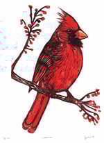 Cardinal Linocut Print 7.5 x 9.5"